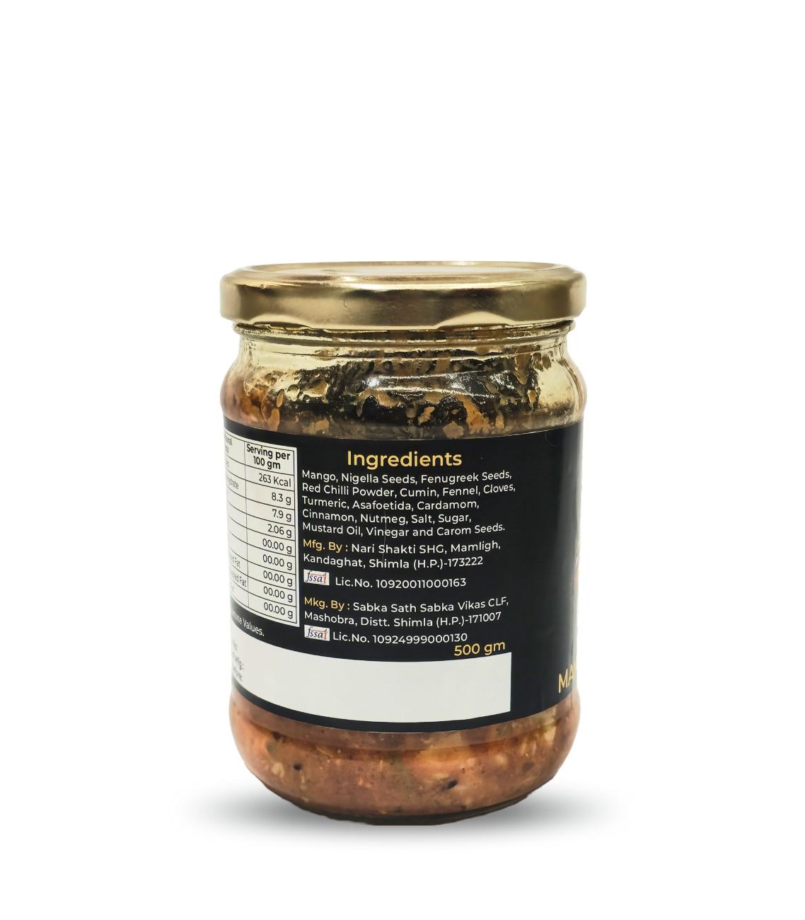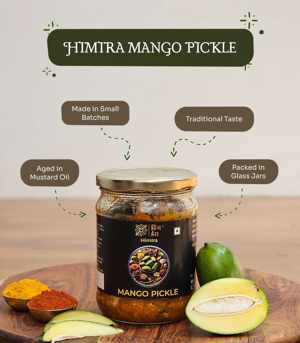 This is not factory-packed achar. This is Homemade Mango Pickle—slowly prepared the way it has always been in mountain kitchens. We use mangoes grown in Himachal, handpicked at the right ripeness, chopped fresh, and mixed with our own blend of spices. The process is not rushed—each batch is cured patiently and packed with care in glass jars to preserve freshness. Whether it’s the tang, the heat, or the oil-soaked richness you crave, HimIra’s Traditional Mango Pickle brings that old-school Himachali feel right to your plate. A taste that feels familiar, yet stands out every time.